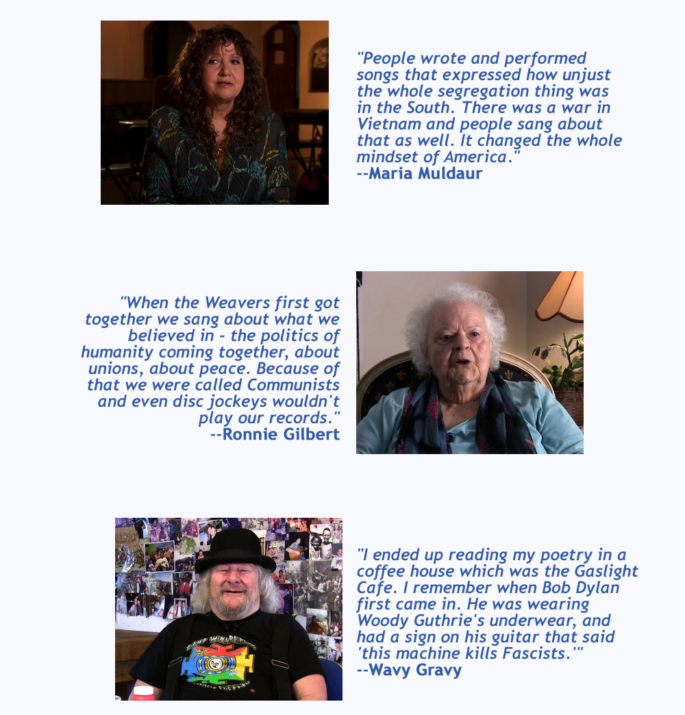 Pete Seeger and Ronnie Gilbert sang with the folk group, The Weavers. Their pro-union songs made them a target of Senator Joseph McCarthy and they were blacklisted